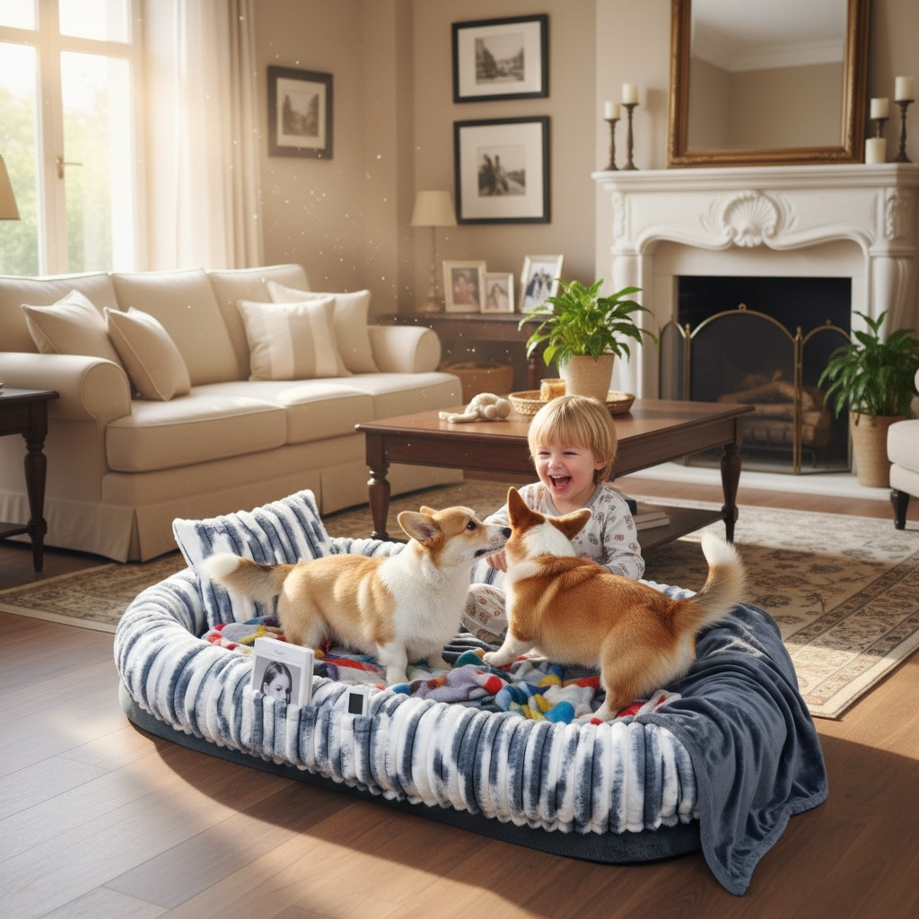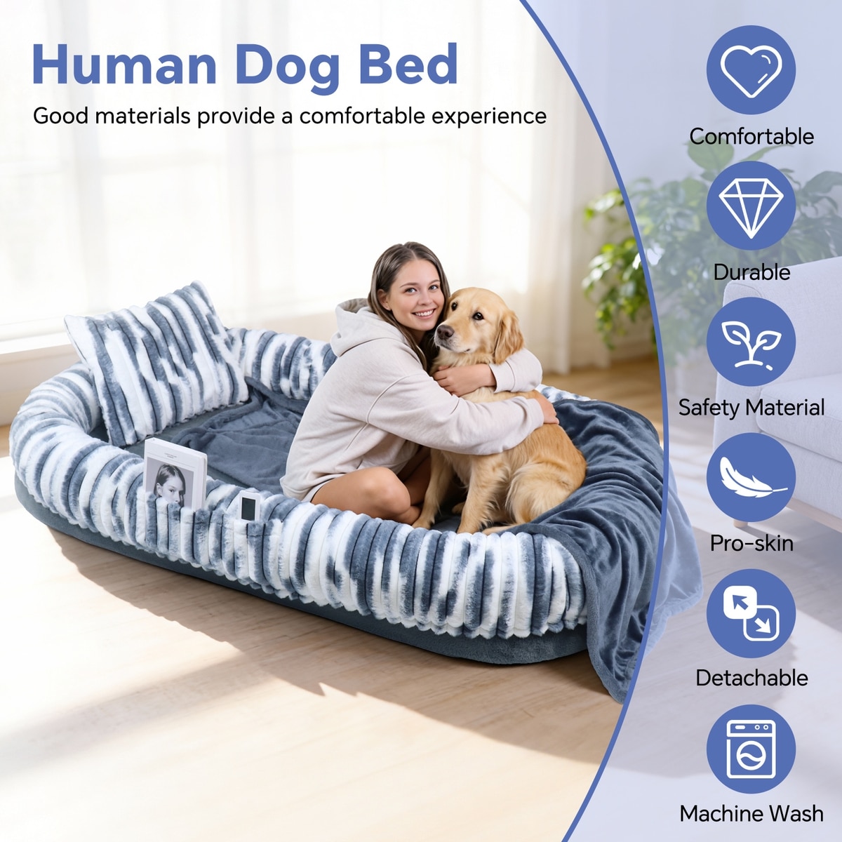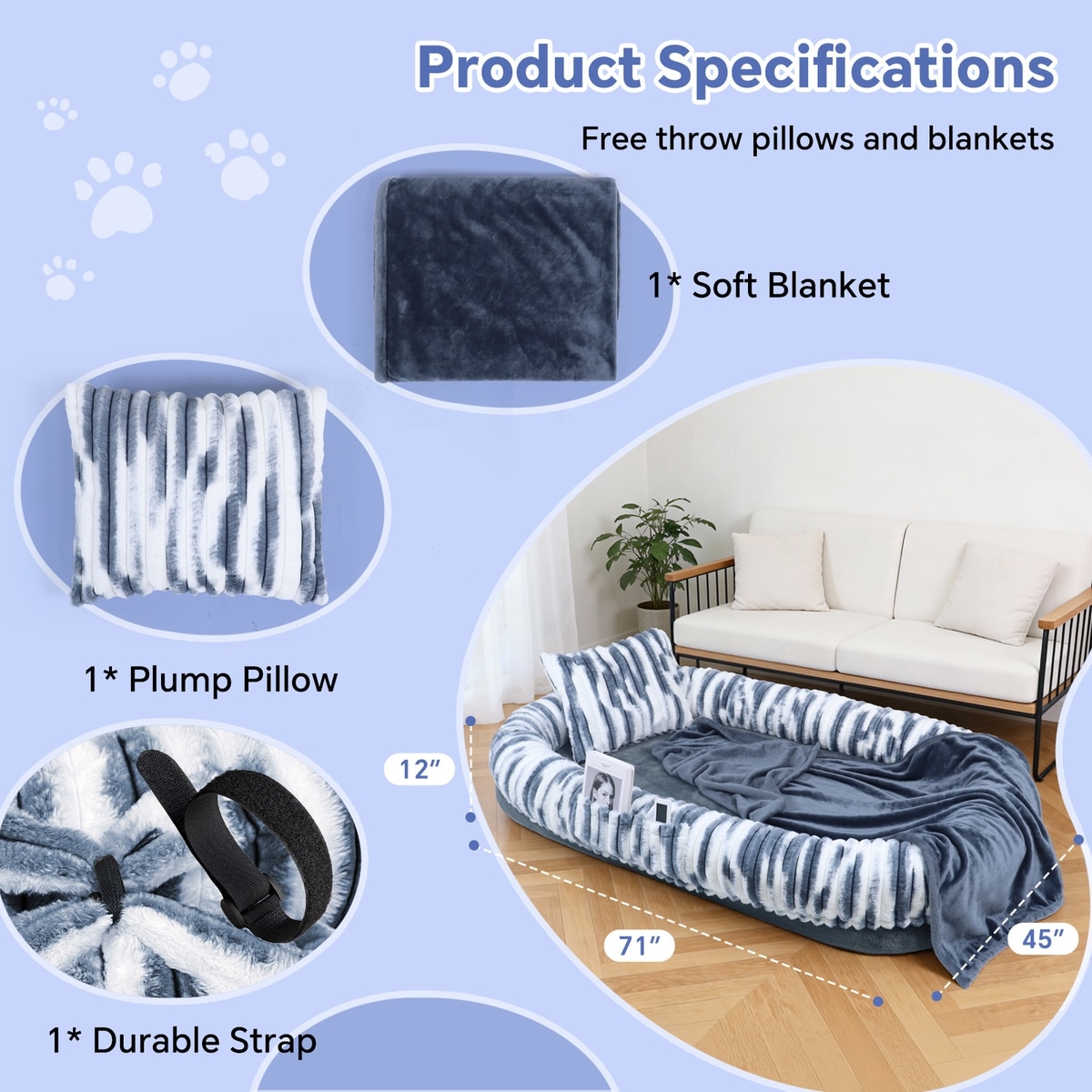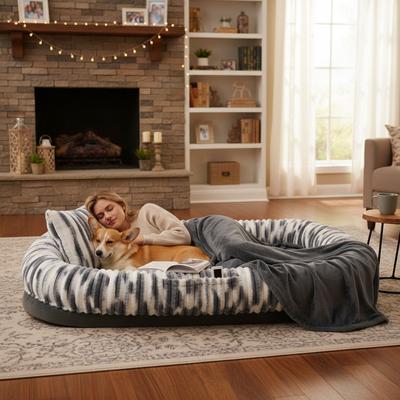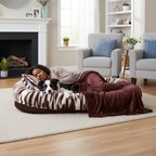 The faux-fur cover is exceptionally soft, warm, and durable. It also has a side storage pocket to hold small items while you and your best bud are lounging.