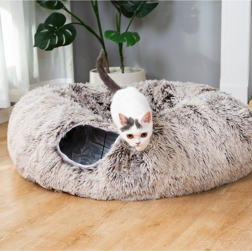 Kylinsure Plush Cat Tunnel Bed, Brown, Medium
