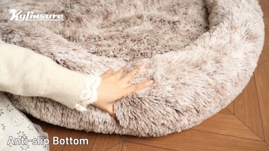 Kylinsure Round Plush Calming Donut Dog & Cat Bed, Grey, Large