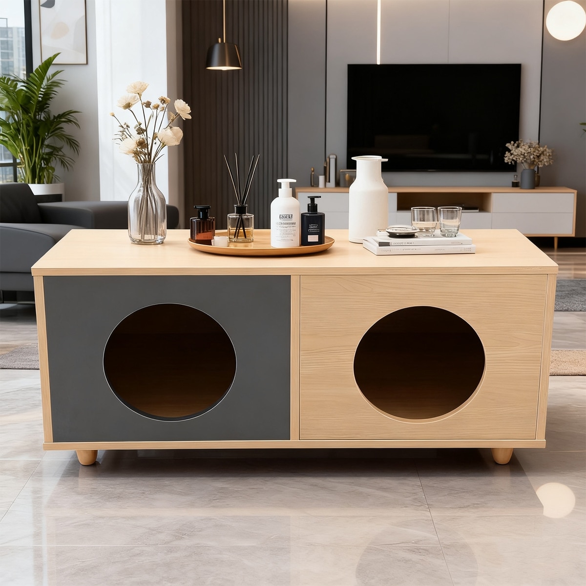 • Multi-functional furniture piece serves as a coffee table and a cozy nest for your pet.