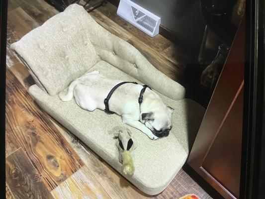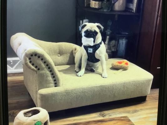 This sofa is absolutely perfect for my Pug, Layla! She’s on it constantly. She loves chewing her toys on it while I’m cooking dinner