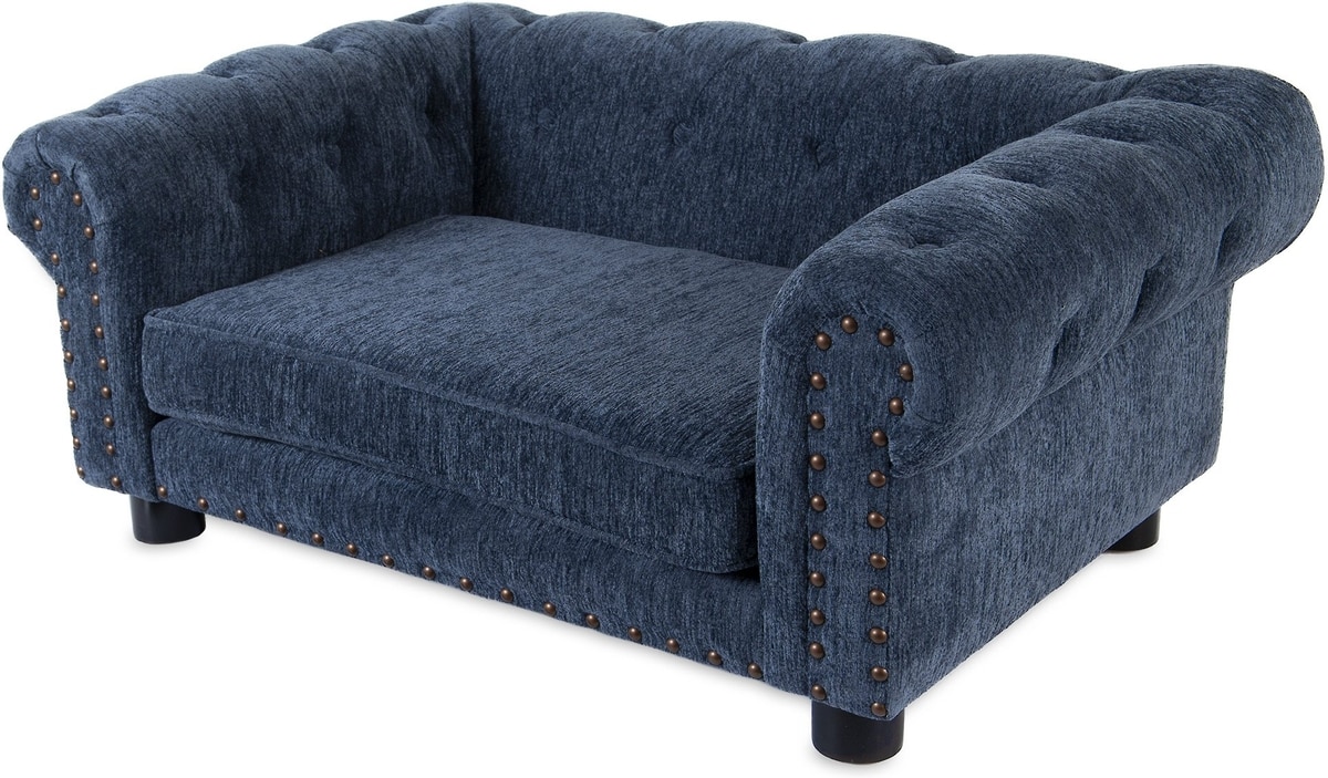 This sofa bed comes in 2 colors, each color is a different size. The blue bed is 35 x 27 x 16 inches and the newton granite bed is 40 x 27 x 16 inches. We recommend measuring your pet in their natural sleeping position to find the perfect bed size and compare with the bed dimensions.