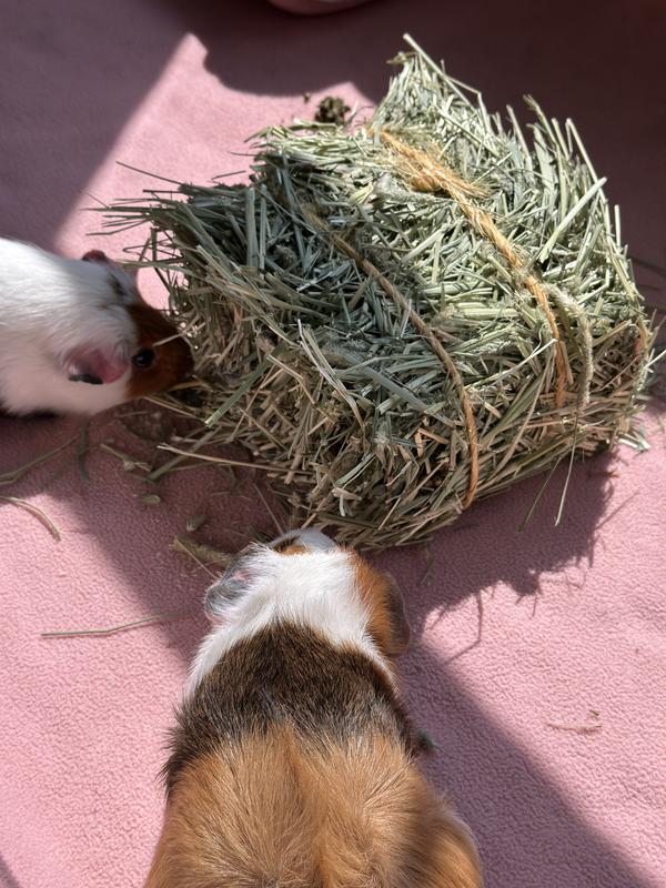 This is a great hay product for guinea pigs to get their hay and also have an extra bit of surprise and a treat included. It adds a crunch and fun flavor that my piggies love(and is great for their teeth), extra foraging fun in addition to their usual hay pile, and it gives them something new to eat instead of basic hay. It’s also great to know it helps with their digestion/gut health, Guinea pigs need that extra support! Highly recommended to piggy parents, especially if they need an extra fiber boost for gut support!