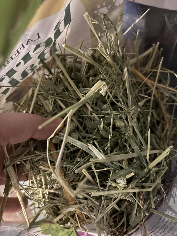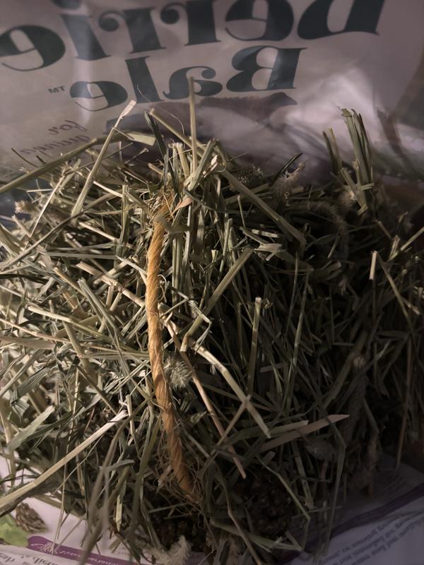 Freshly opened bag (originally sealed) had awful smell, not like hay, not like mint. After taking the baling twine off if this very tiny bale of Timothy hay and setting it aside, we realized the odor of pesticide poison was coming from the twine. Hay wrapped with and sealed inside with this cannot possibly be remotely safe for consumption. Please, Lafeber, do due diligence with quality control and safe pet food practices.