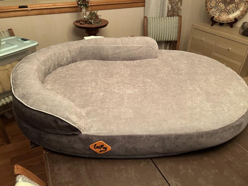 LaiFug Chenille Orthopedic Memory Foam Oval Dog Bed, Gray, Large