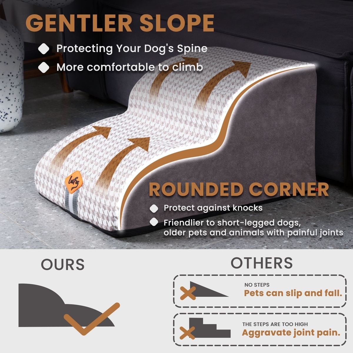 - Perfect for pets with limited mobility or aging pets, these steps include a handle for easy lifting and placement.