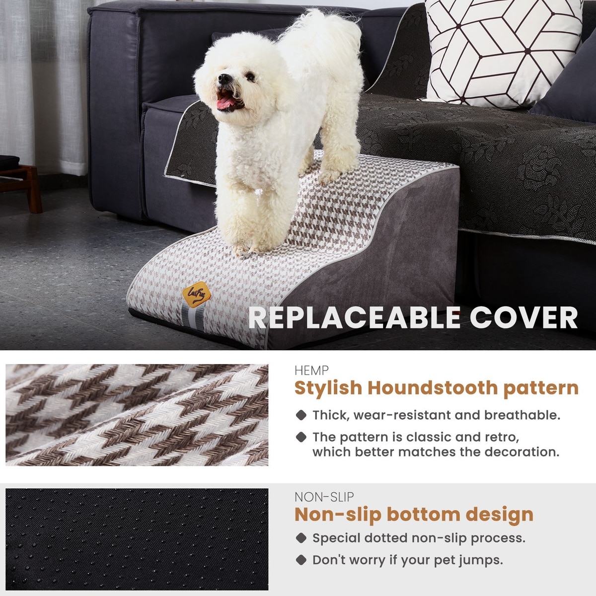 LaiFug Dog Stairs, Black & White, Small: 2-Step