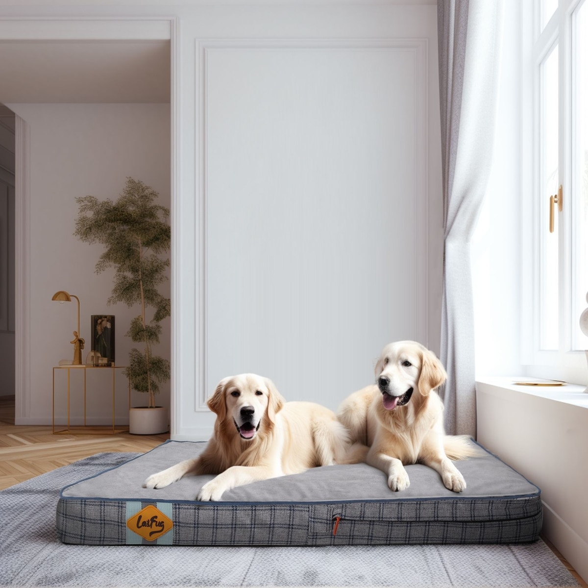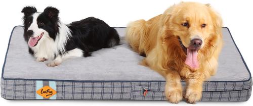 LaiFug Orthopedic Flat Dog Bed with Removable Cover, Grey Blue Plaid, XX-Large