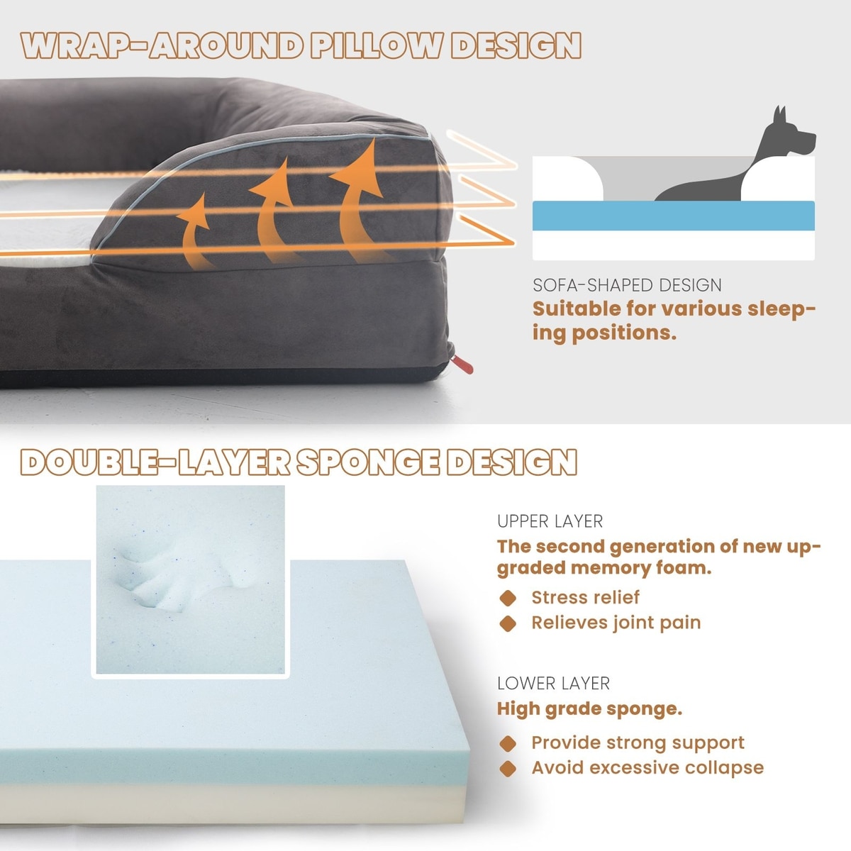 LaiFug Orthopedic Premium Memory Foam Dog Bed Sofa, Grey, Jumbo