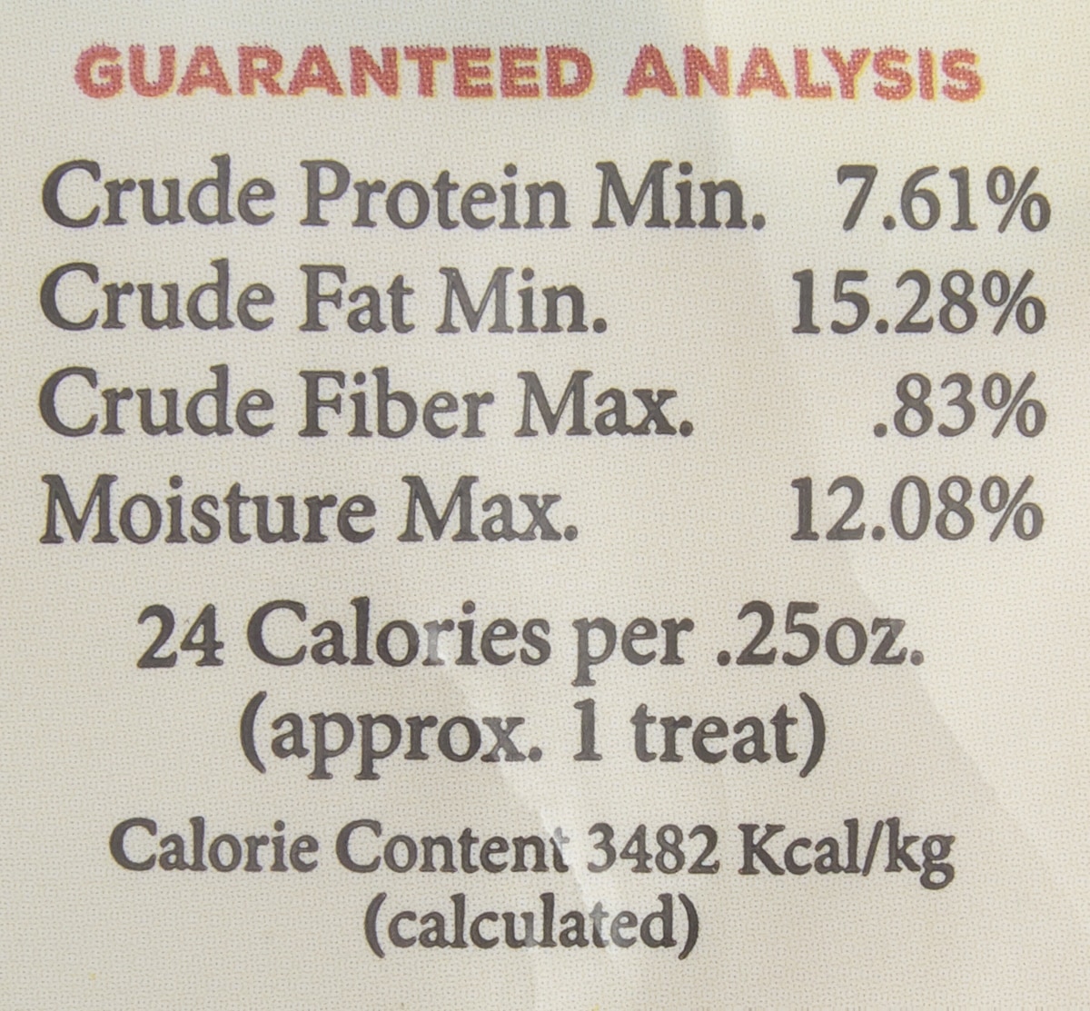 | Crude Fat | 15.28% min |