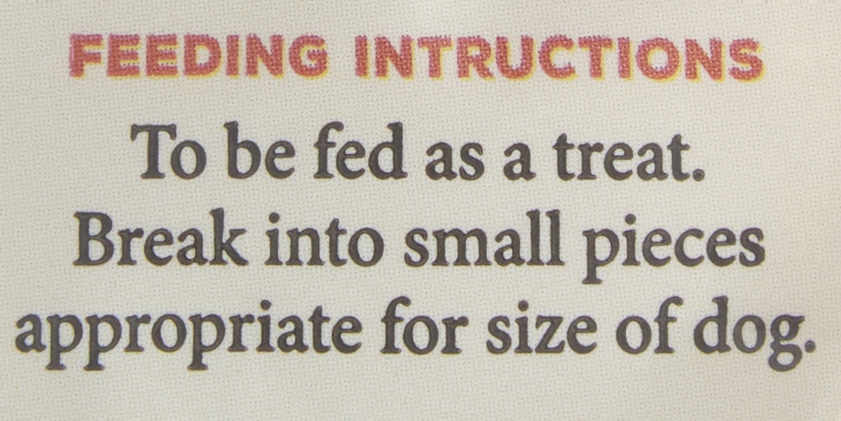 To be fed as a treat. Break into small pieces appropriate for size of dog. Monitor dog while treating and always have fresh water available.