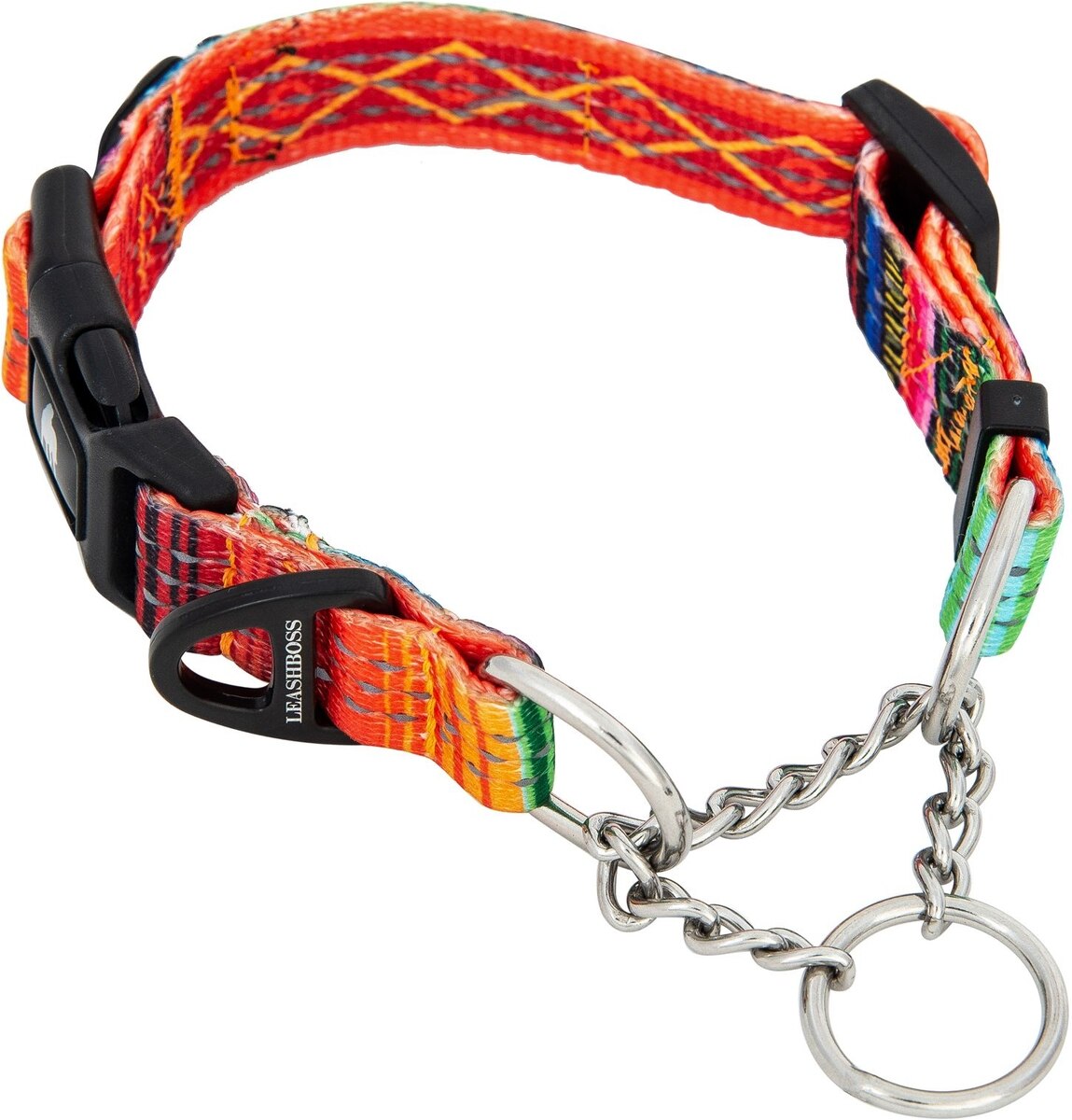 Leash Boss Chain Martingale Dog Collar, Orange, Small