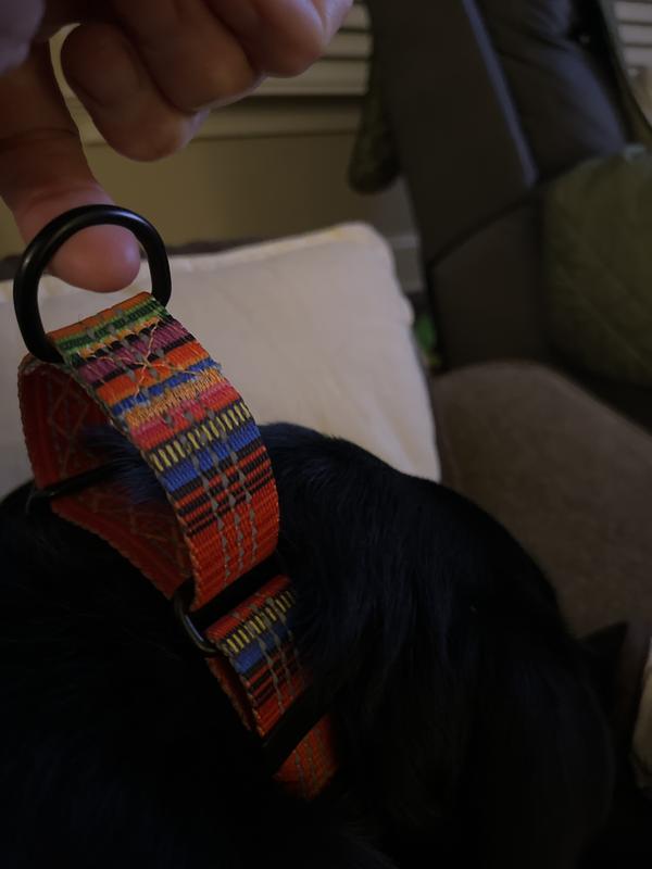 Leash Boss Patterned Fabric Martingale Dog Collar, Orange, Med-Large