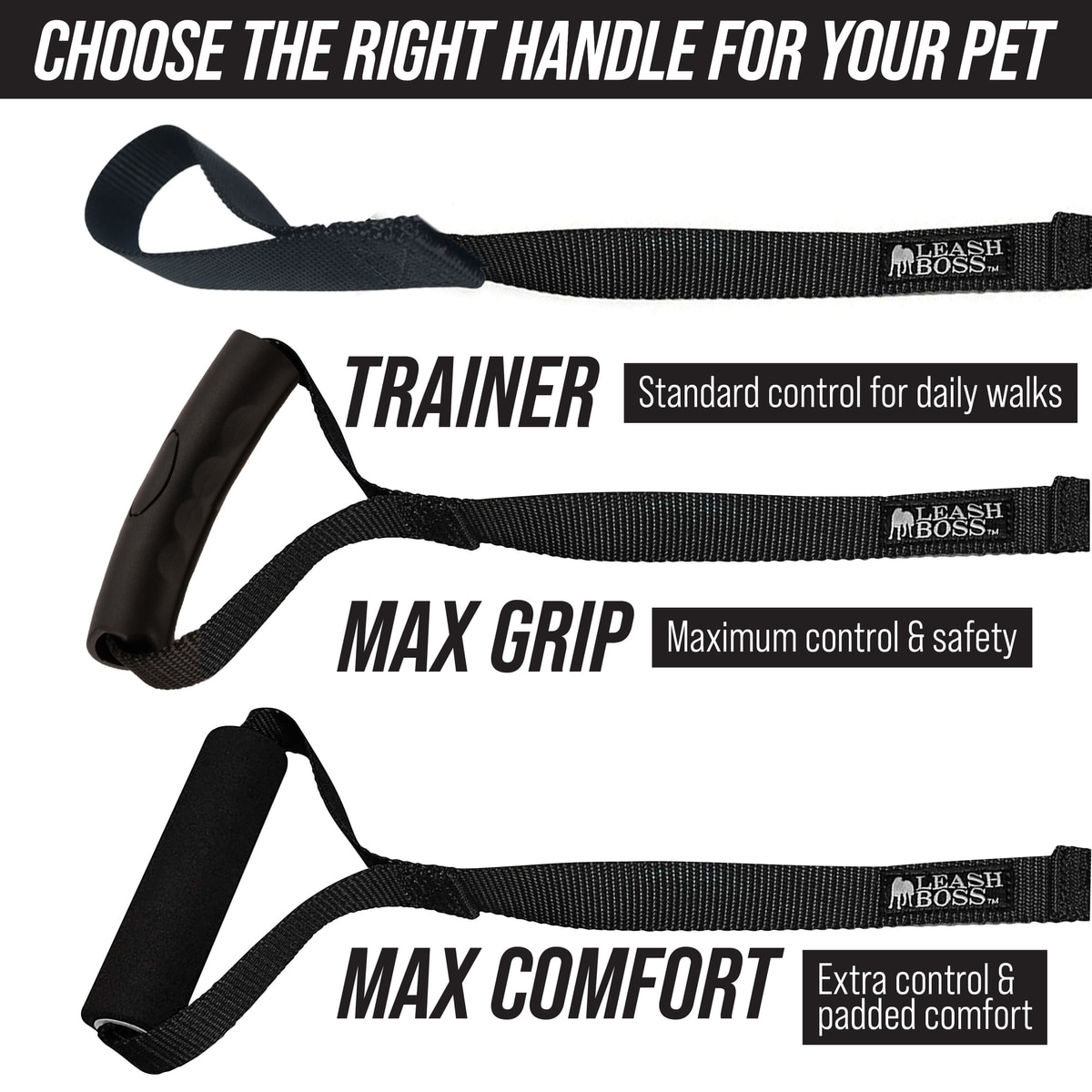 • Rubber molded handle is comfy and helps prevent leash burn.