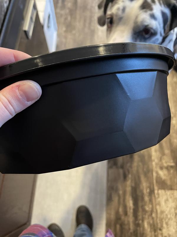 This is a great quality bowl that will be perfect for using outside in the warmer months. The size was larger than expected and perfect for my Great Dane. I love the design on the outside which gives it a modern feel, and I also love that’s its dishwasher safe!