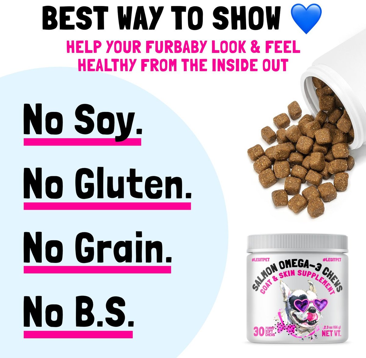 Legitpet Alaskan Salmon Oil Omega-3 Soft Chew Skin & Coat Supplement for Dogs, 30 count