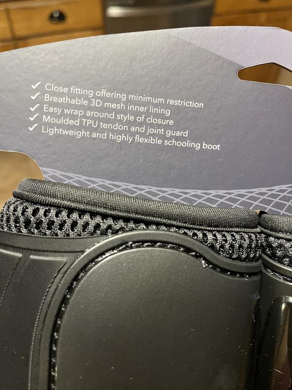 A value jumping boot stacked with features. Close-fitting vented shell protects the tendon and prevents overheating. Soft lining and flexible cut-away design. Double hook and loop over-locking closure ensures security and makes for easy fitting.