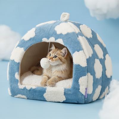 Lesure 2-in-1 Cat Cave Bed, Blue, Medium
