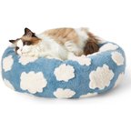 Lesure Calming Cute Modern Plush Jacquard Shaggy Orthopedic Anti-Slip Donut Dog & Cat Bed with Removable Cover, Blue, X-Small