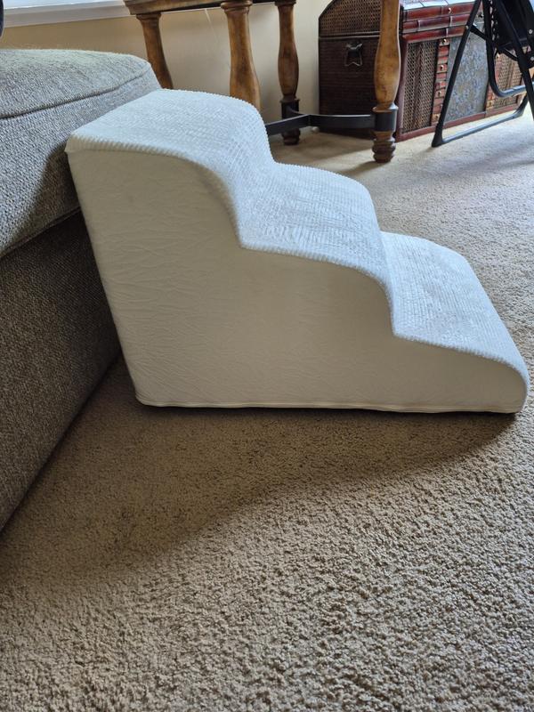 We have had a homemade set of dog stairs to get onto the bed, but they were crude, and a little embarrassing. These steps are just right. They don't take up too much floor space, and my Pug-Dachshund mix scampers up and down it like it was an escalator.