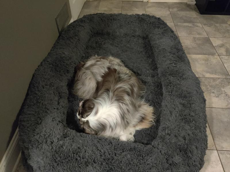 I got this for my giant dog, as he loves a good mattress but runs over the usual “dog” range of sizes. This dog bed fits the bill. He is able to lay down comfortably, roll over, and doesn’t seem to mind the warmth from the furry exterior. Great value purchase, would recommend.