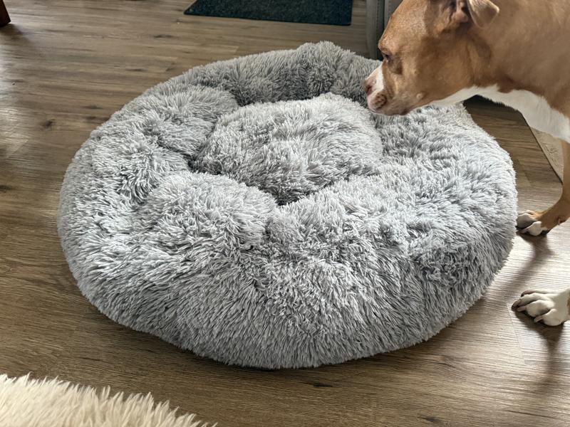 We ordered the large round cuddly anti-anxiety dog bed, and after giving it the full two days to completely fluff up, it looks fantastic! Our dog is 80 pounds (a
