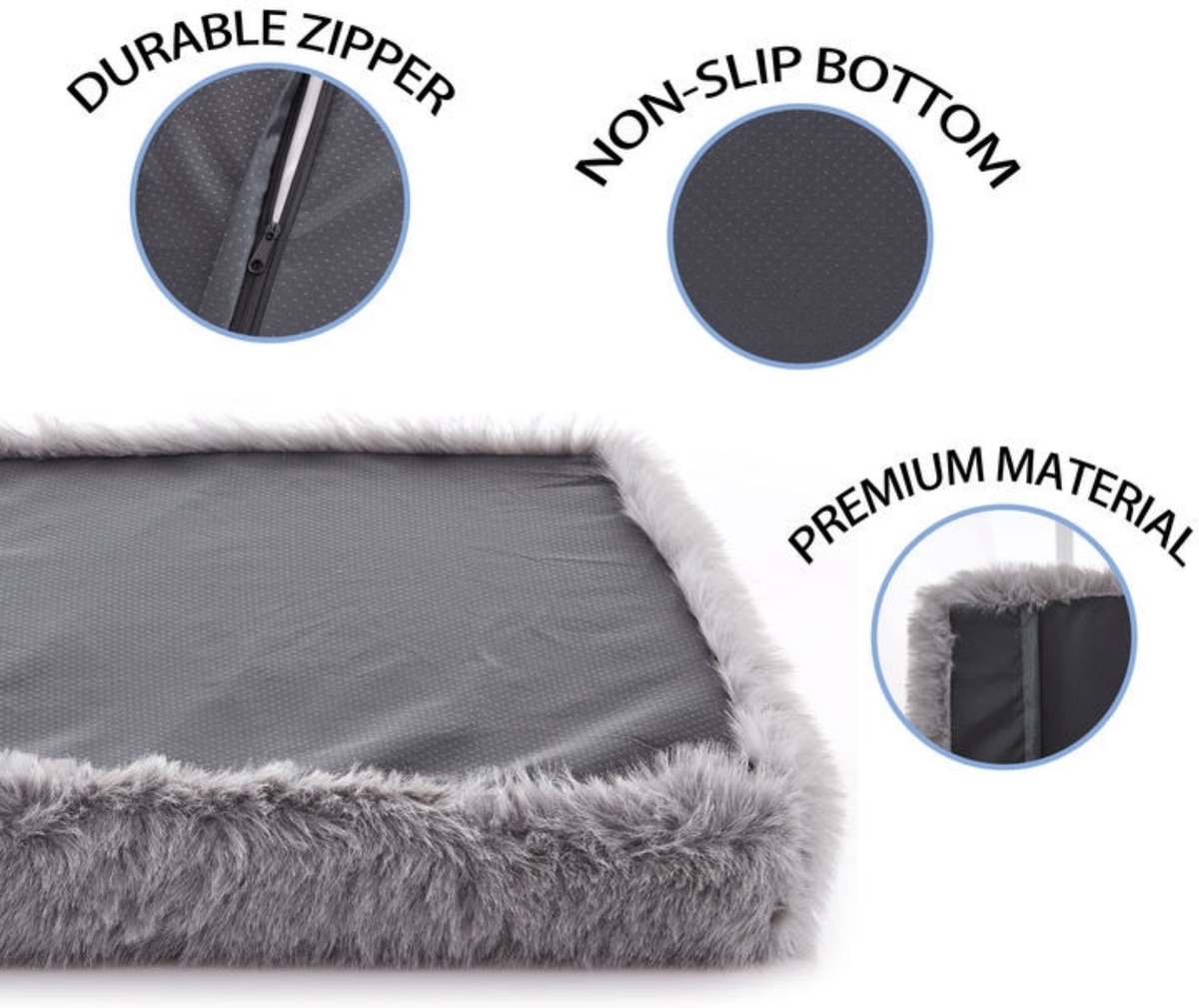 LFC PETS Fluffy Orthopedic Dog & Cat Bed with Waterproof Removable Cover, Grey, Medium