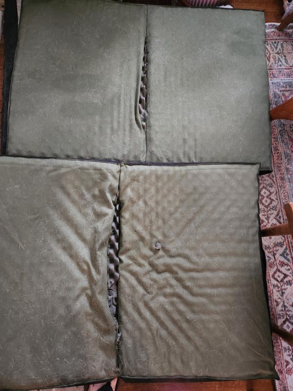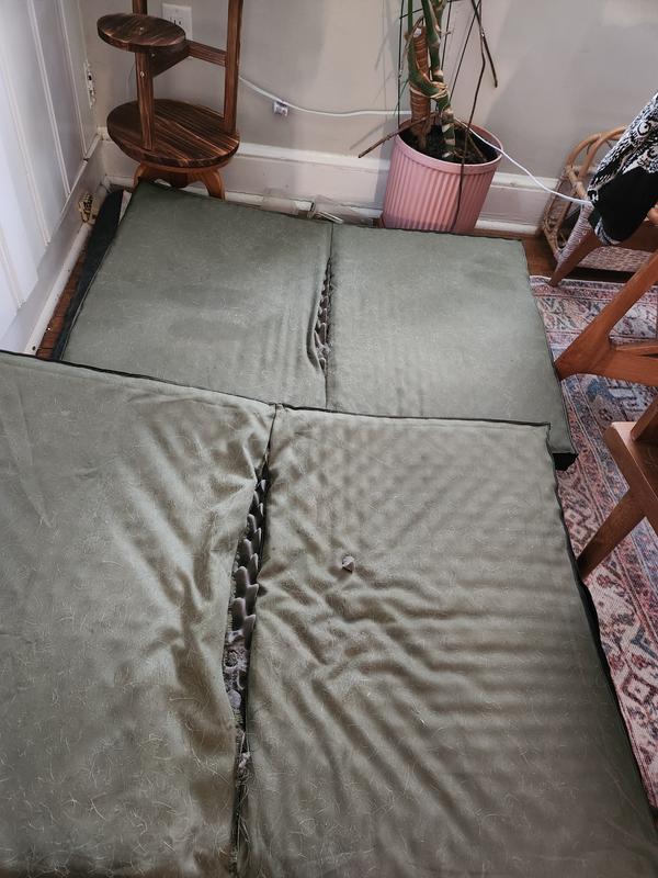 pad is thin, and not nearly as big as seen in the photograph. it's not big or thick enough for my dog to lay down. also, did not know "some assembly required". you have to insert the foam pads into the cavities yourself. one of the zippers broke when stuffing one of the pads in. this was a waste of money all around.