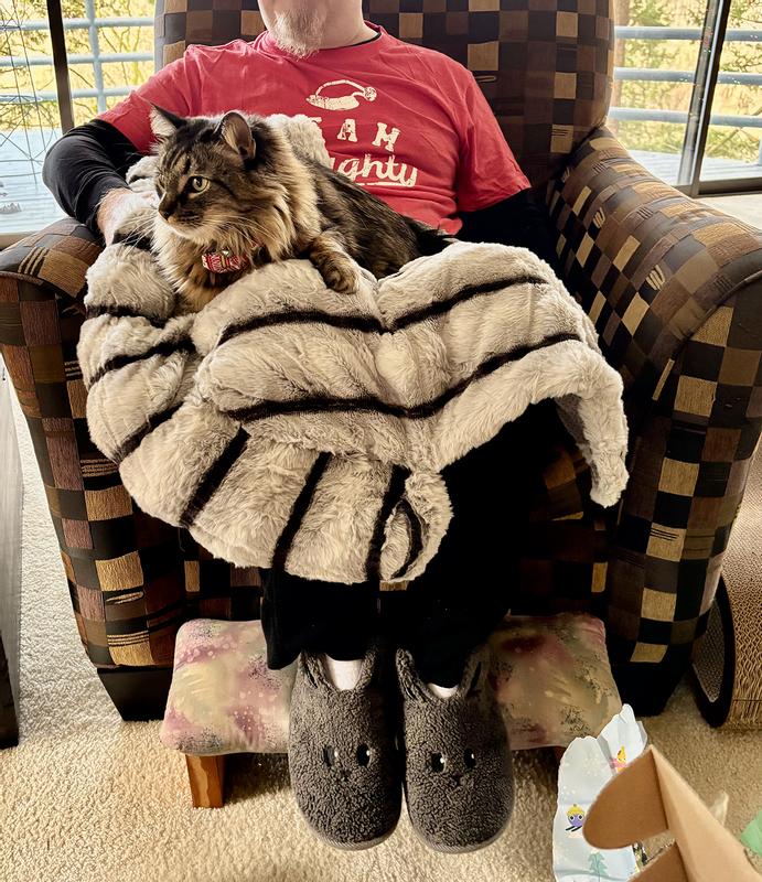 We got this for our cats for Christmas, we hardly got it out of the bag before Manny climbed right into it on my husband's lap! It's a hit.