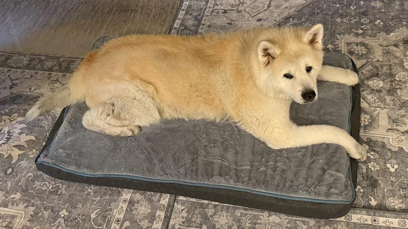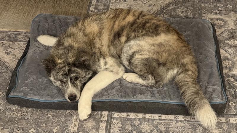 This orthopedic bed is a must at my house I have a 7 year old mastiff that adores it and has claimed it immediately. He sleeps comfortably and doesn’t get too hot