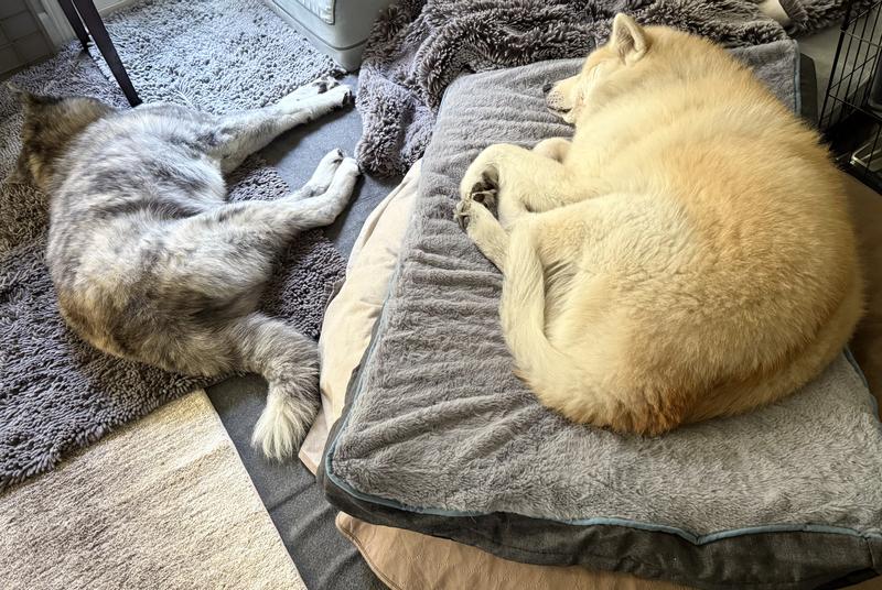 The washable cover is nice, and maybe it comes quite a bit larger than the foam insert to account for shrinking over the first few wash-and-dry cycles. However, upon initial use, it’s loose around both ends, though that means the foam is very easy to insert. I gave it time to expand for a couple days, but it seems not to have needed more than half an hour or so. Good news is the dogs enjoy it, and the foam has nice structure to it (versus some cheap beds’ obvious foam scraps left over from manufacturing other products) and is indeed super soft while still providing cushion. It’s on the thinner side but true to the dimensions listed in the description.