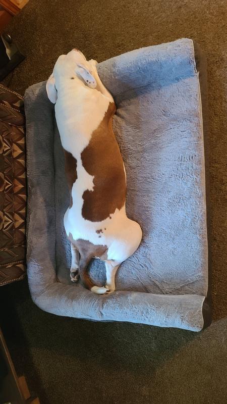 First impressions where the bed seemed a bit smaller than the photo online. However, upon taking it out of the box and letting it “settle”, my dog Foxy almost immediately went into the bed and made herself comfortable. She’s a senior dog with arthritis, so the orthopedic foam will be beneficial!
