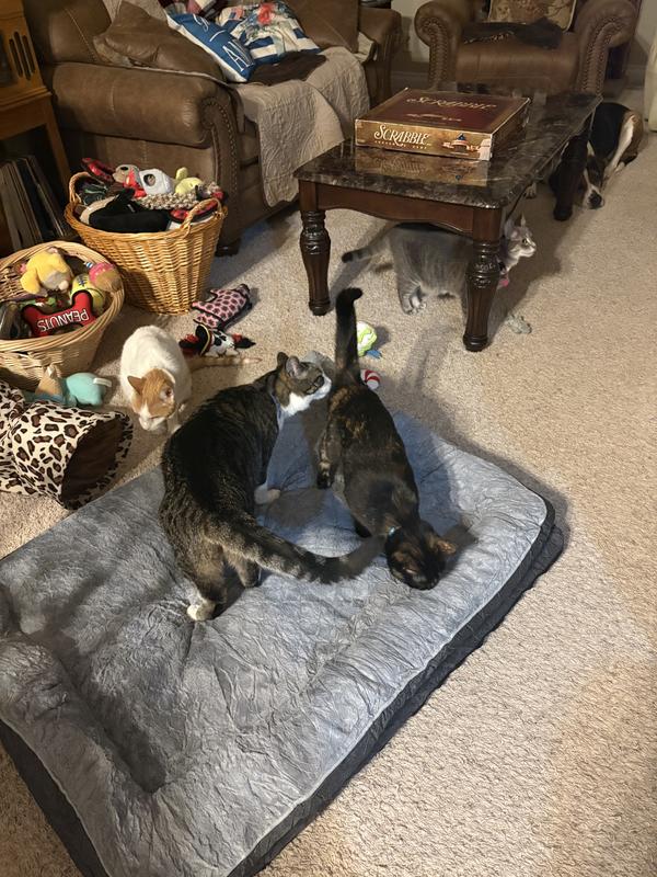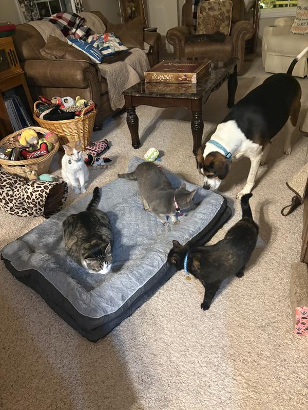 This bed was immediately pounced on by four cats and within 24 hours the beagle had moved in and slept on it. He is typically terrified of new beds but could not