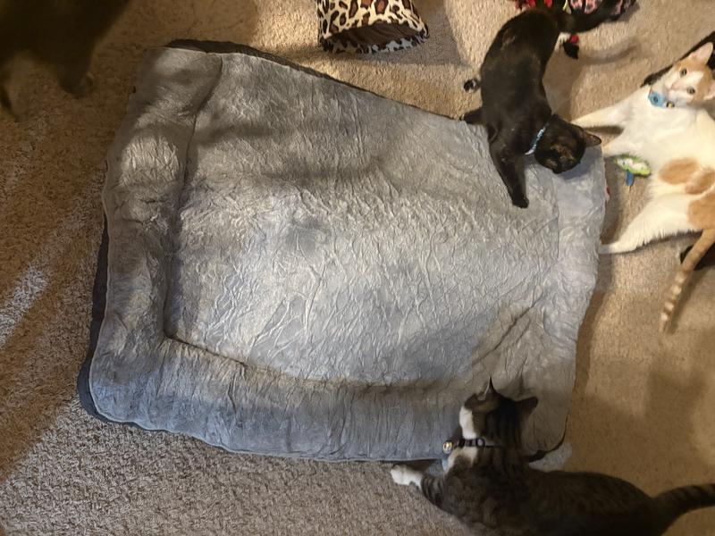 This bed was immediately pounced on by four cats and within 24 hours the beagle had moved in and slept on it. He is typically terrified of new beds but could not resist the size of this one and the comfortable bolsters. Plenty of room to stretch out but also the bolsters provide stability and security. I did have to put a blanket on it the first time to get him to lay on it but after that he owned it. I was quite surprised that it expanded so well and since it hasn’t been 48 hours yet I am sure it will expand more. It is already amazing at the only 24 hour mark.