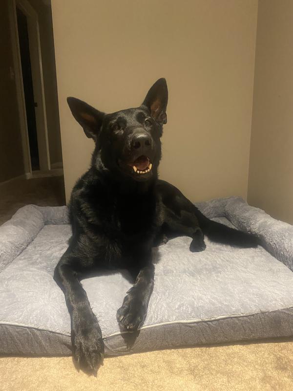 I was shocked when this bed arrived because the box was so much smaller than I expected, as it was vacuum sealed. I'm glad it was packaged this way as it makes it worry free, knowing nothing was going to get snagged or opened while in transit. As per the directions, I opened the bed, fluffed up the sides, and let it sit flat for 48 hours. I was nervous the bed wouldn't "poof up" but within 24-48hrs, it had done it's job. I could barely get the bed on the floor before our dog climbed into it and fell in love! I got the XL and it gives our boy enough room to sploot and stretch out. He is a snuggler so the raised sides are great. I did think the bolster was going to be larger/cushier because of the product photo, but our dog loves it none the less. I can tell the orthopedic foam is comfortable as our dog has been choosing this bed over the couch since we got it. When the time comes to get another bed, I would not hesitate to choose this one again.