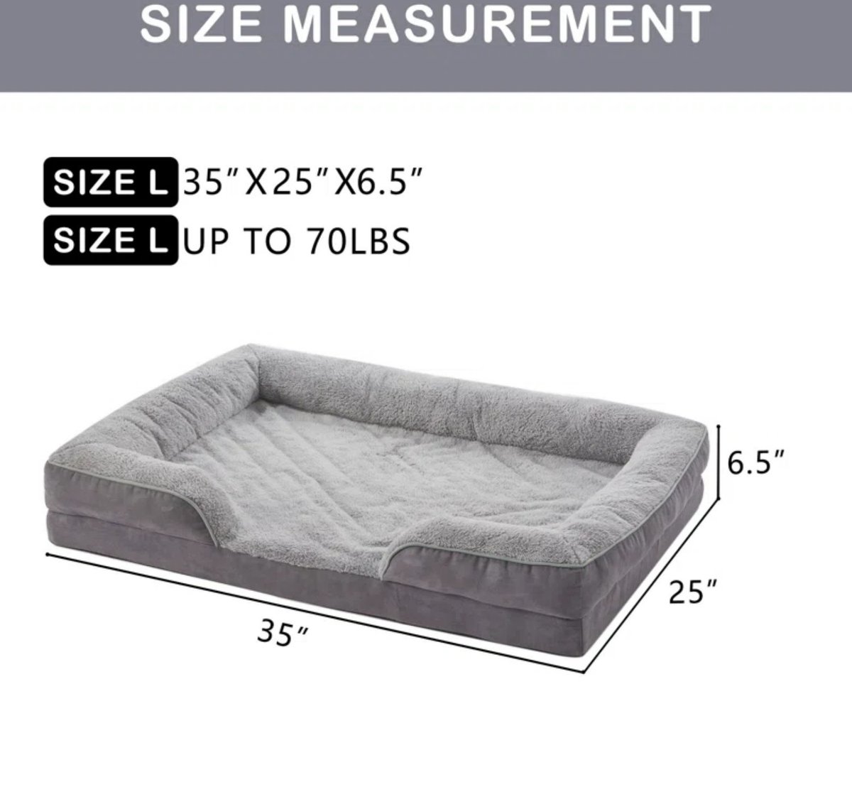 I purchased the large and got what looks like a medium. Quality of the bed is not good. Bed came in vacuum sealed package. The only thing I liked about the bed