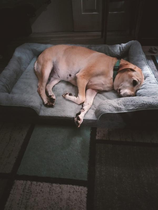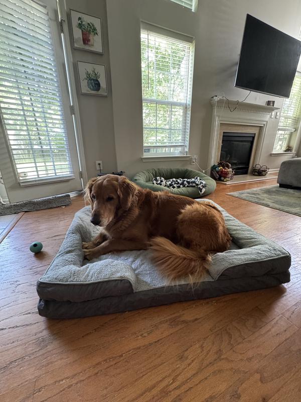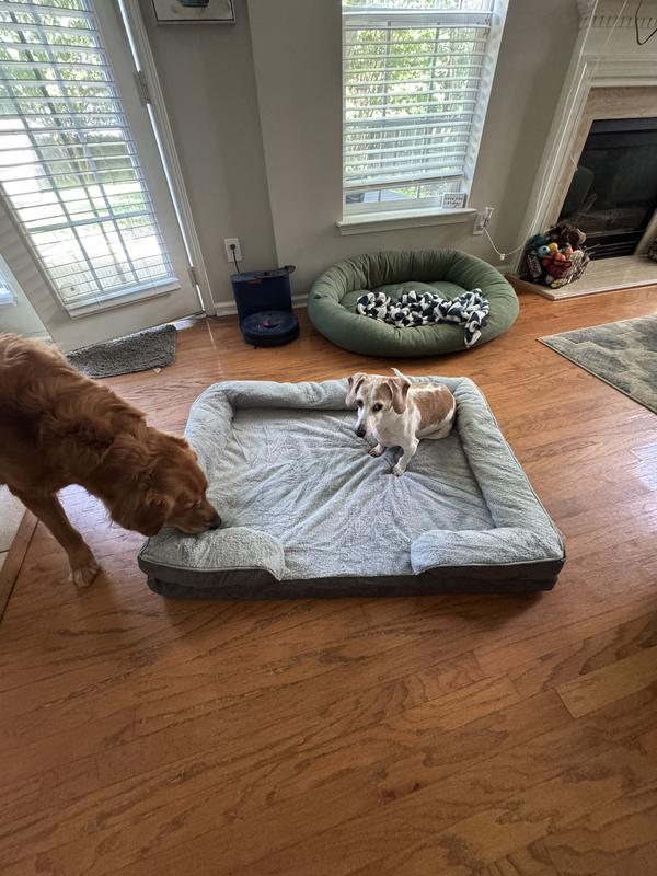 We are using this large bed to replace one of the beds in our office. We have 3 dogs (2 goldens and a dachshund) all of which trade between the beds all day. The