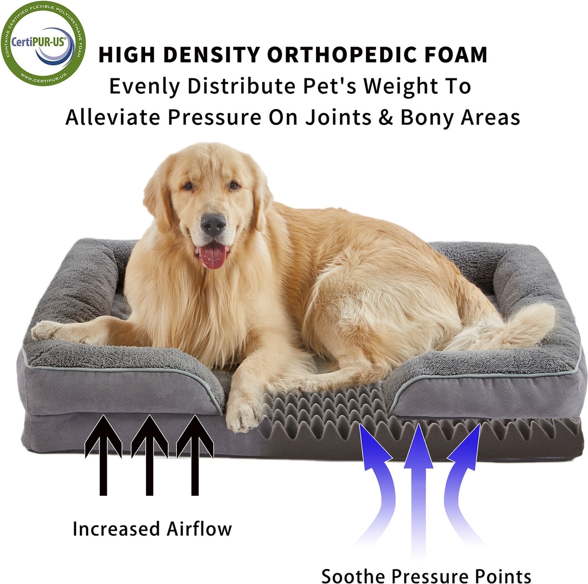 Orthopedic Egg Crate Foam: CertiPUR Foam Certified LFC PETS’ orthopedic structure provides excellent spinal support and relieves joint pressure, making it especially suitable for senior dogs and those in recovery. CertiPUR Foam Certified means it is safe, eco-friendly, and non-toxic for your dog.