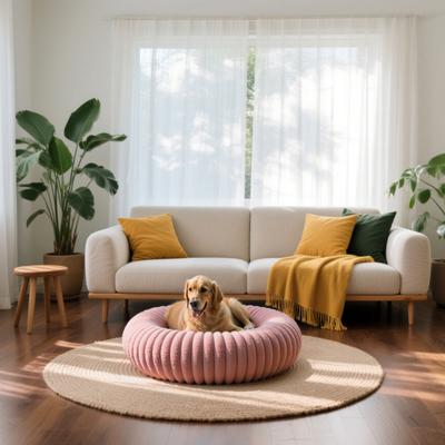 LFC PETS Donut Bolster Dog & Cat Bed with Removable Cover, Pink, Large