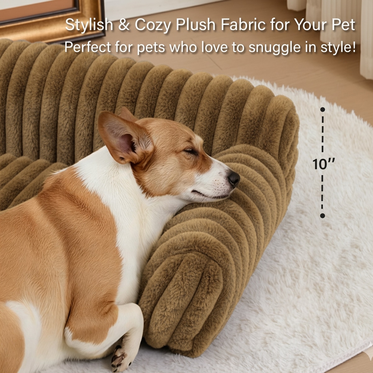 LFC PETS Plush Foldable Couch Dog & Cat Bed with Removable Cover, Khaki, Medium