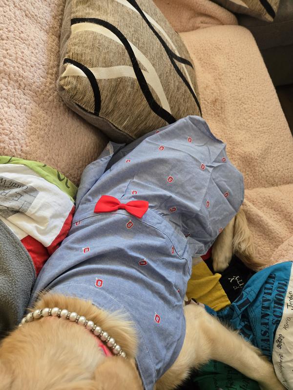 The License House Ohio State Chambray Block O Dog Dress, Blue, Small