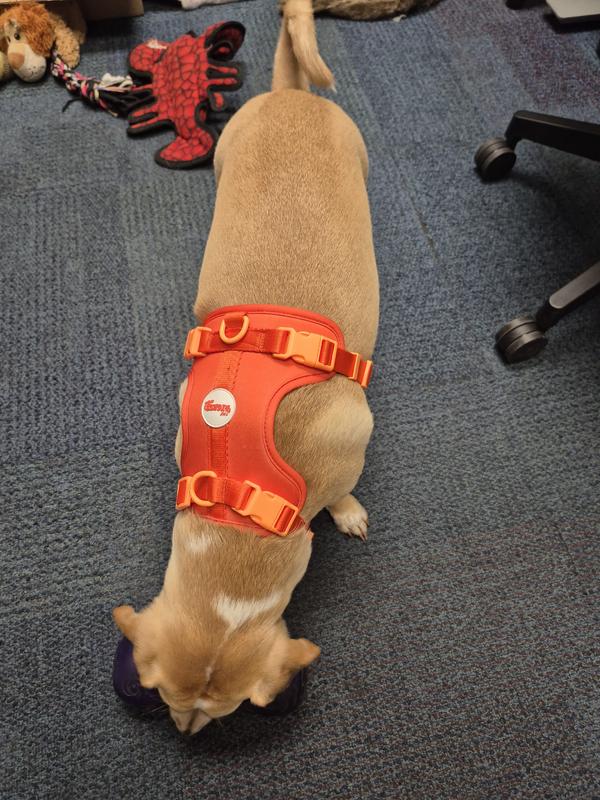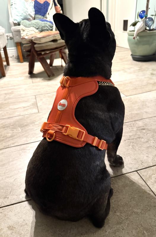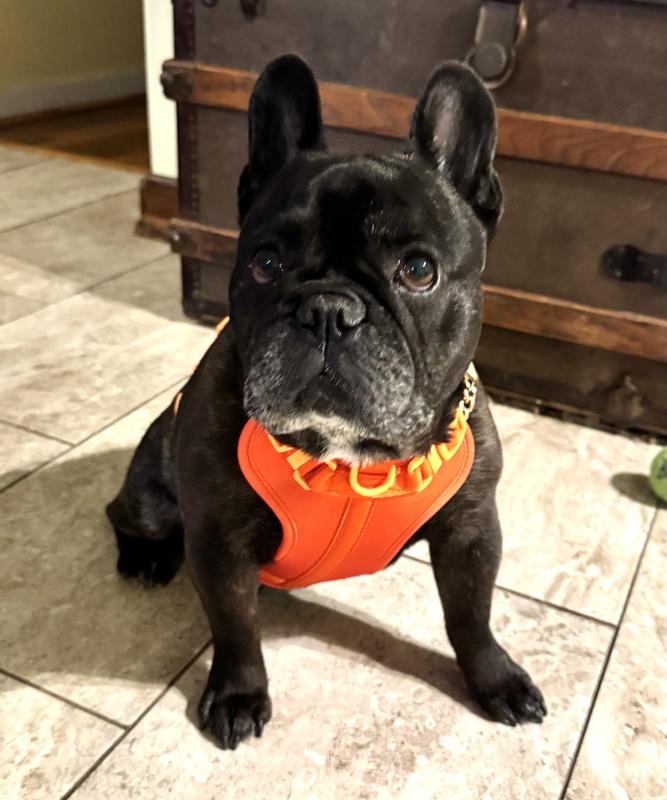 I’m so happy with this Arlo no pull pet harness in the Aperol color. it’s even more vibrant and cheerful in person! The padding is soft and comfy for my dog, and