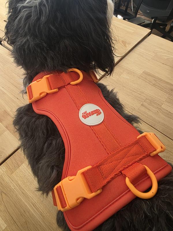 I’m so happy with this Arlo no pull pet harness in the Aperol color. it’s even more vibrant and cheerful in person! The padding is soft and comfy for my dog, and the adjustable fit ensures it stays snug without being restrictive. I love the three buckle system, which makes putting it on and taking it off super easy, especially for wiggly pups. It has multiple leash clip options, which are great for switching between training and regular walks. The material feels durable yet breathable, and it’s also machine washable, which is a huge bonus. This harness gives me better control while walking, and my dog seems really comfortable in it. Highly recommend it for both style and function!