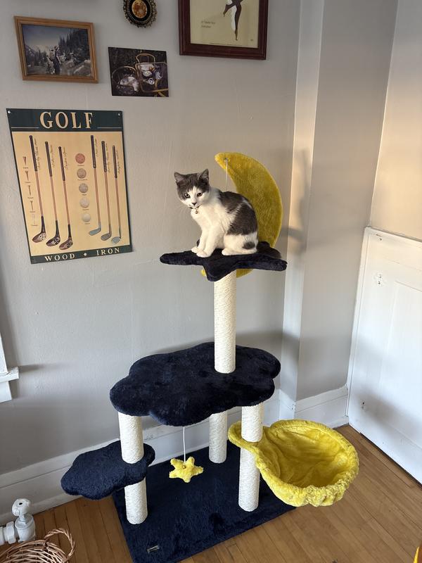 THE LICKER STORE Aurora Modern 49-in 3-Tier Sisal Moon & Stars Cat Tree, Navy