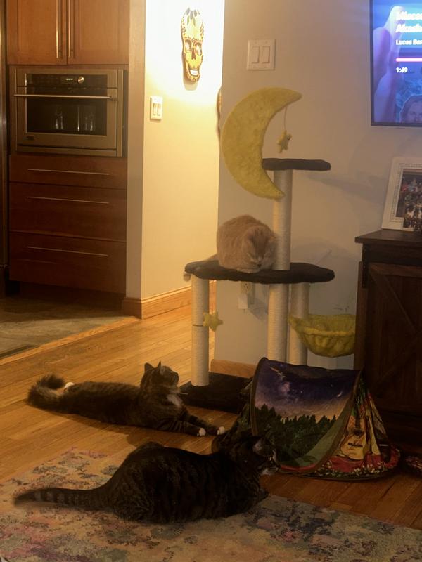 My cats love their treehouse. My older cat would never play on these types of things, but this one he loves. So fun. They’re on it so much they wake me up at night