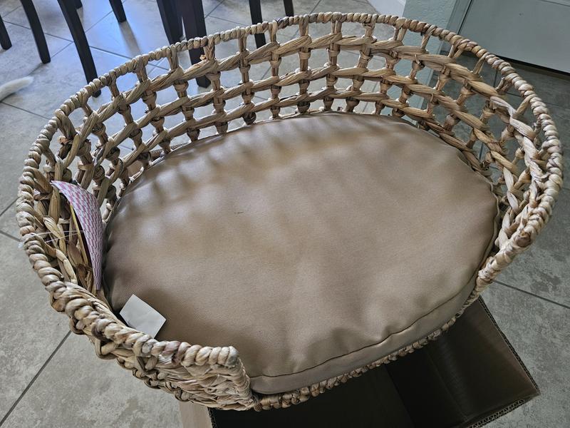 This is a beautiful, well constructed dog bed that Banjo loves! The hyacinth material is tightly woven over a solid metal frame which adds durability. There was
