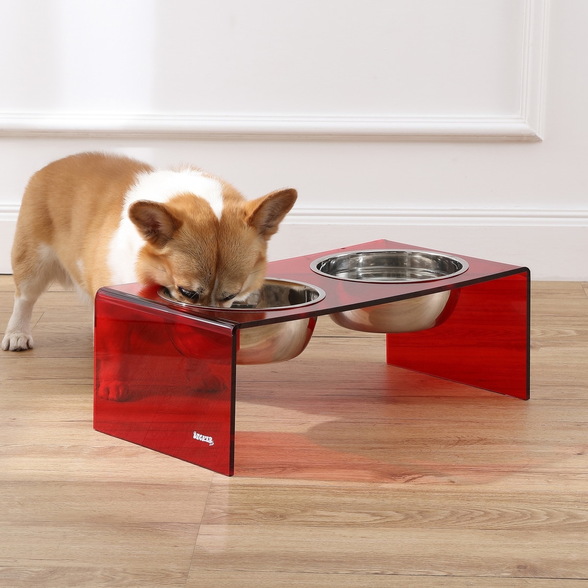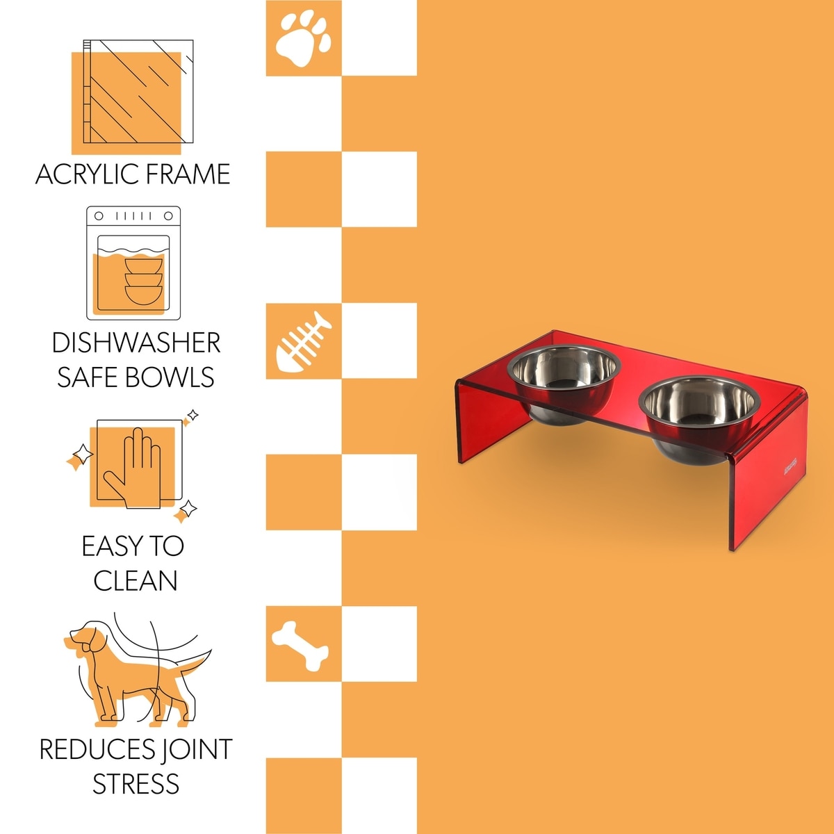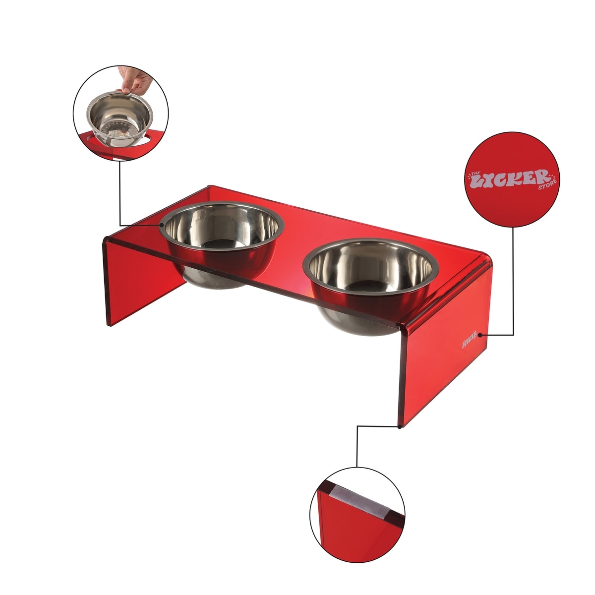 THE LICKER STORE Keaton Modern Lucite Stainless Steel Elevated Dog & Cat Bowls, Red/Chrome, Medium/Large: 7.5-in, 6.8 cup