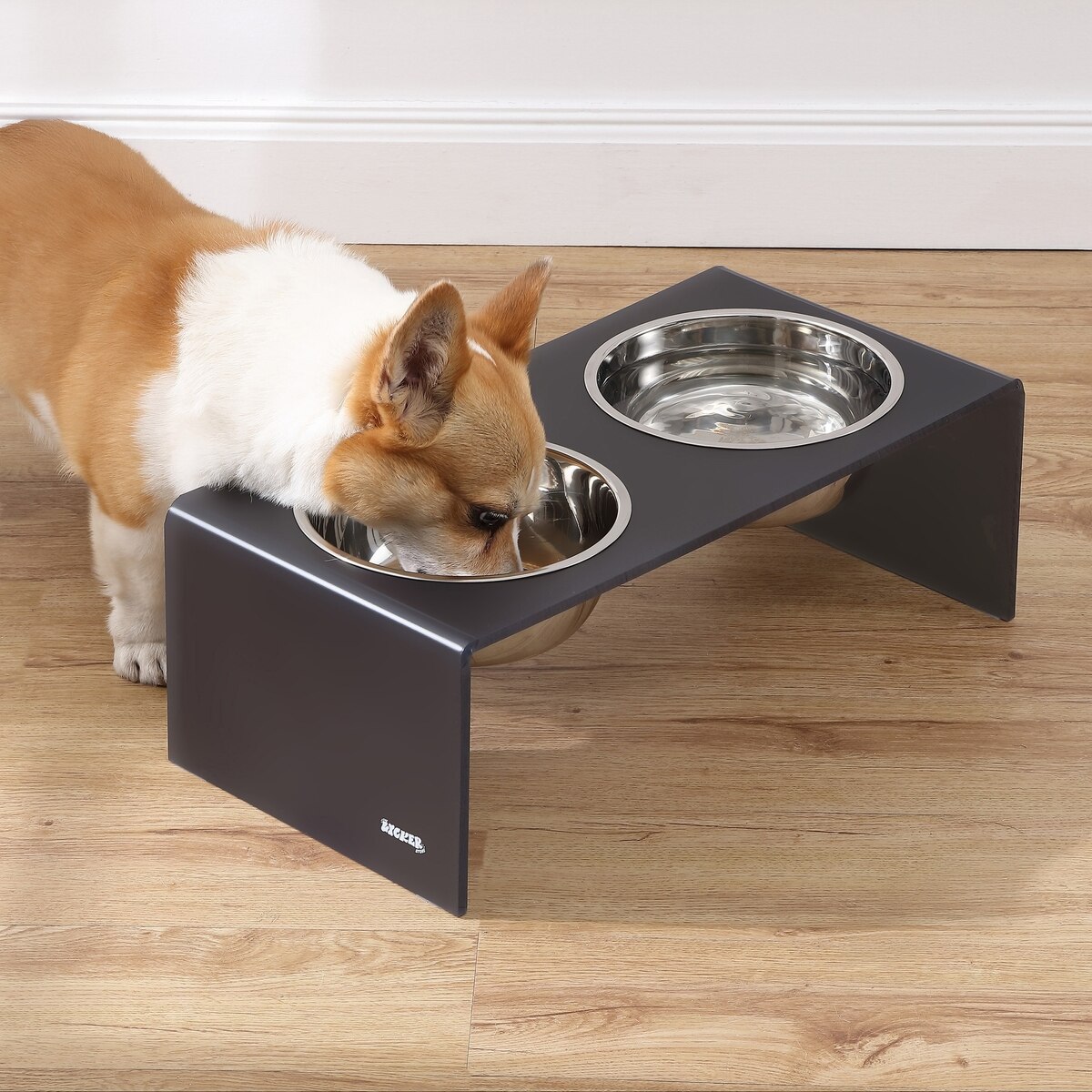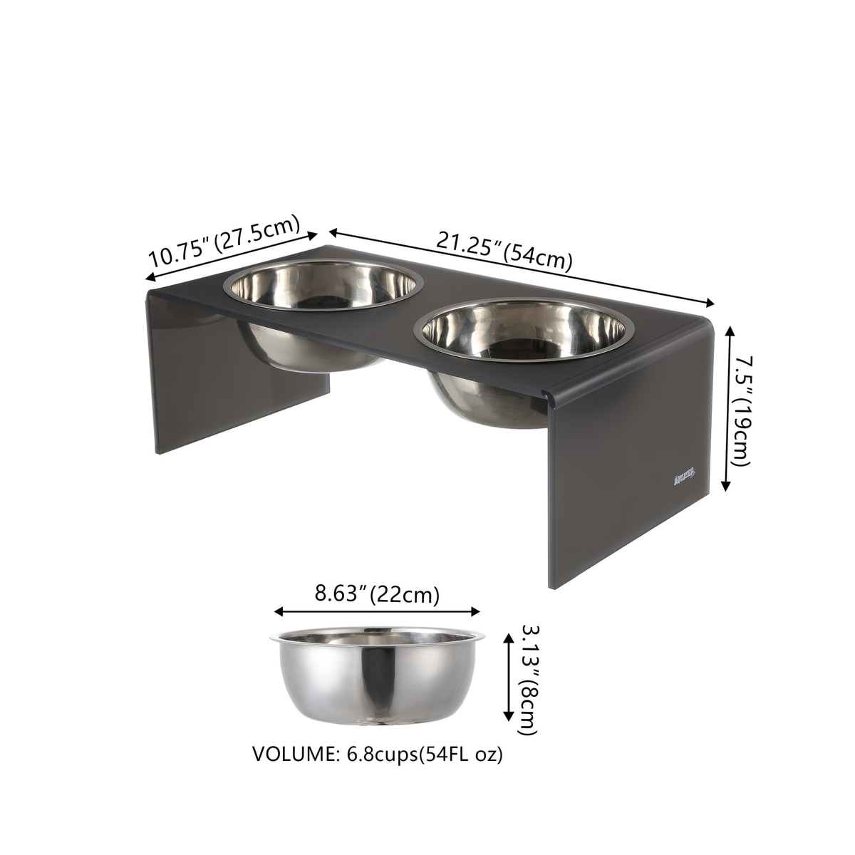 THE LICKER STORE Keaton Modern Lucite Stainless Steel Elevated Dog & Cat Bowls, Dark Gray/Chrome, Medium/Large: 7.5-in, 6.8 cup