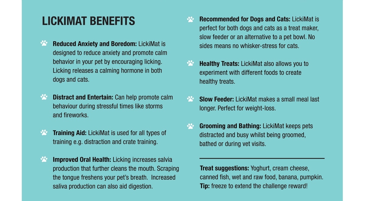- LickiMat Classic Buddy Slow Feeder Dog Lick Mat, Turquoise$8.99 Chewy PricePromo, New Customers Only: Spend $49+, Get $20 eGift Card