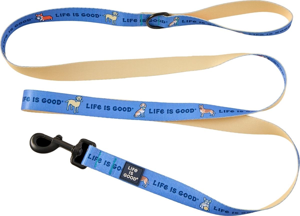 LIFE IS GOOD Vintage Dogs Dog Leash, 6-ft long, 1-in wide, Cornflower Blue